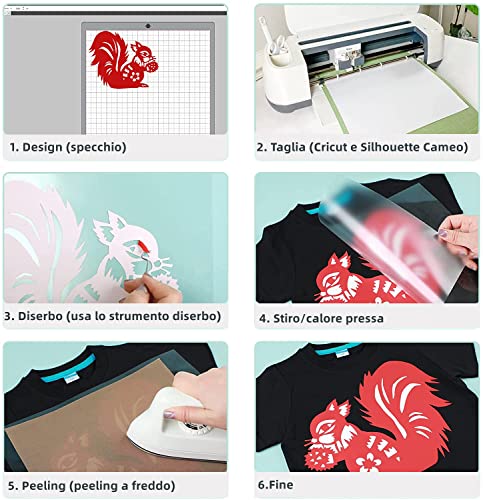 ADATTO AI PRINCIPIANTI: il nostro vinile htv è dotato di teflon e viene fornito con un manuale, particolarmente adatto ai principianti. Sia una termopressa che un ferro da stiro per uso domestico possono aiutare a trasferire il calore del vinile perfettamente ai vestiti dopo aver utilizzato i parametri di stiratura consigliati.