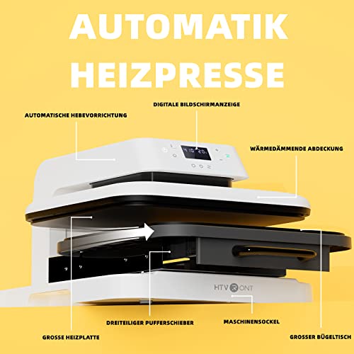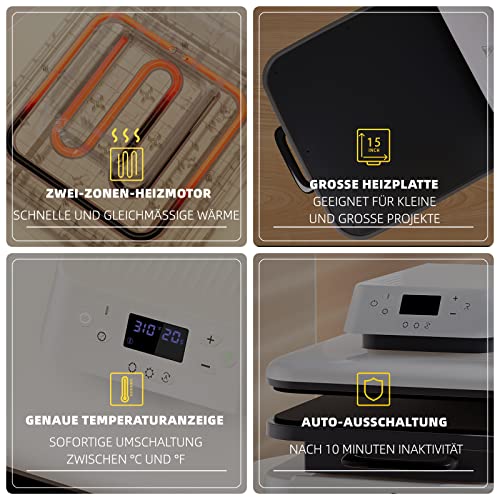 HTVRONT Pressa a a caldo per t-shirt, 38 cm x 38 cm (15" x 15"), riscaldata fino a 210 °C (410 °F) per progetti professionali di stampa (bianco)