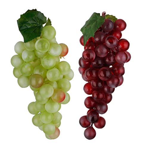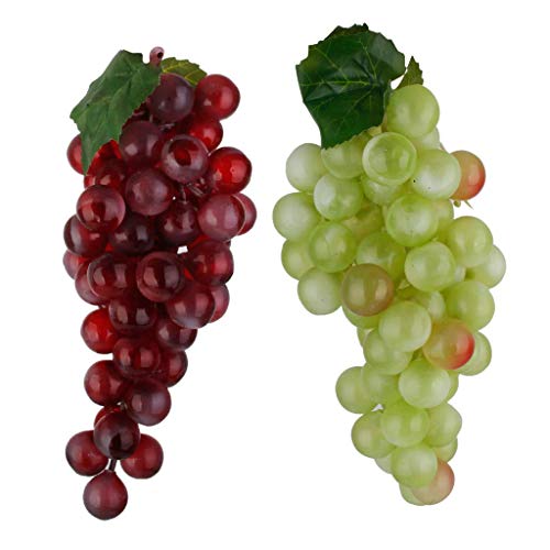 HTYG 2 Pezzi di UVA Artificiale-Artificiale Frutta Decorazione-UVA Verde e Viola Realistica Frutta Finta-Casa Cucina Decorazione di Nozze Fotografia Giocattolo