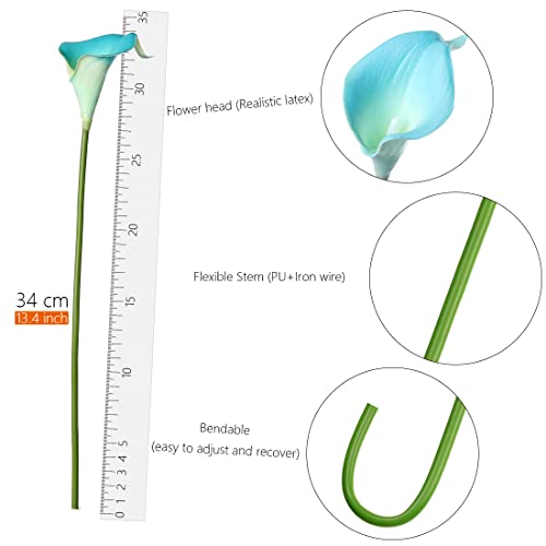 Ogni confezione contiene 12 pezzi di fiori calle artificiali finti in lattice azzurro per decorazioni a stelo singolo (vaso non incluso). Abbiamo diverse opzioni di colore, calle fiore artificiale per decorazioni anniversario matrimonio Real Touch come veri bouquet finte calle di fiori realistici, questi fiori sembrano molto pieni e morbidi al tatto.