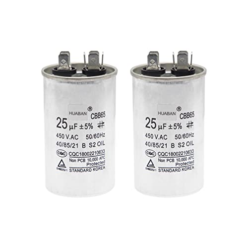 HUABAN 2 Pezzi 25 uF Condensatore di avvio CBB65 450V 50/60Hz Guscio in alluminio per condizionatore d'aria