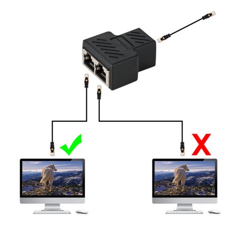 RJ45 Ethernet network Splitter potrebbe aumentare, suddividere un cavo di rete su 2 porte di uscita, è comodo, per utilizzare alternativamente, per utilizzare diversi computer. (si prega di notare che non può essere supporta contemporaneamente l' uso di due cavi)