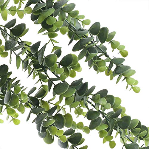 Riceverai 2 pezzi di edera finte per decorazioni, lunghe circa 75 cm.Le foglie di eucalipto realistiche e belle non richiedono luce solare e umidità e possono rimanere verdi tutto l'anno, adatte a varie decorazioni per interni ed esterni.