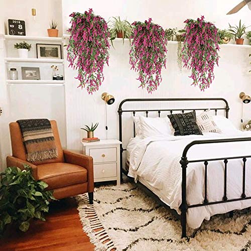 HUAESIN 3Pcs Pianta Finta Cadente da Interno Esterno Lavanda Piante Artificiale da Appendere 75cm Edera Piante di Plastica Viola per Decorazione Balcone Giardino Esterno Parete Matrimonio