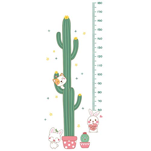HuaHong Grafico Altezza Bambini, Metro Bambini Parete Adesivo, Righello Decorazione Adesivi Murali per Camera da Letto Ragazzi e Ragazze (Color: Cactus Bunny)