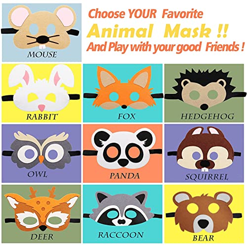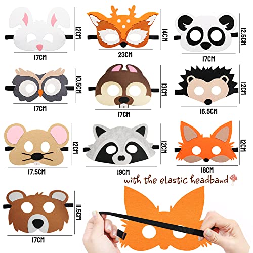 Contenuto del set: il set contiene 10 diversi modelli di maschere di animali in feltro, topi, conigli, volpi, ricci, gufi, panda, scoiattoli, cervi, procioni e orsi. Una varietà di maschere per animali soddisfa le tue diverse esigenze.