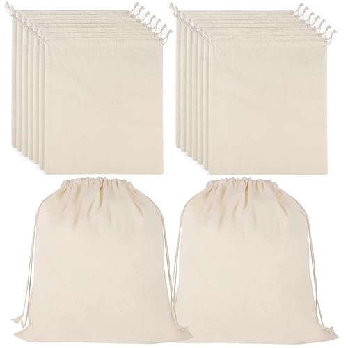 HuaJiao 16 sacchetti di cotone, 25 x 30 cm, piccoli sacchetti di stoffa con coulisse, per matrimonio, Natale, fai da te (bianco)