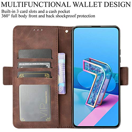 HualuBro Cover per ASUS Zenfone 7 PRO, Flip Cover a Libro in Premium PU Pelle Magnetica Antiurto Case Portafoglio Custodia per ASUS Zenfone 7 PRO ZS671KS Cover - Marrone