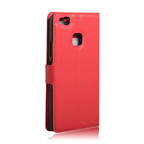 HualuBro Cover Huawei P9 Lite, Flip Case in PU Pelle Premium Portafoglio Cover [Funzione Stand] [Slot Carte] Leather Wallet Phone Custodia per Huawei P9 Lite (Rosso)