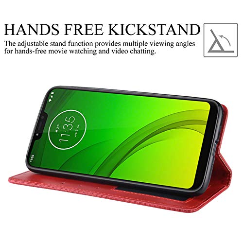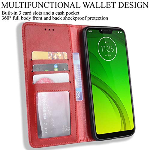 HualuBro Cover per Moto G7 Power, Flip Case in PU Pelle Premium Portafoglio Cover [Funzione Stand] [Slot Carte] Leather Wallet Phone Custodia per Motorola Moto G7 Power (Rosso)