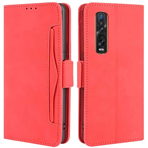 HualuBro Cover per Oppo Find X2 PRO, Flip Cover a Libro in Premium PU Pelle Magnetica Antiurto Case Portafoglio Custodia per Oppo Find X2 PRO Cover - Rosso