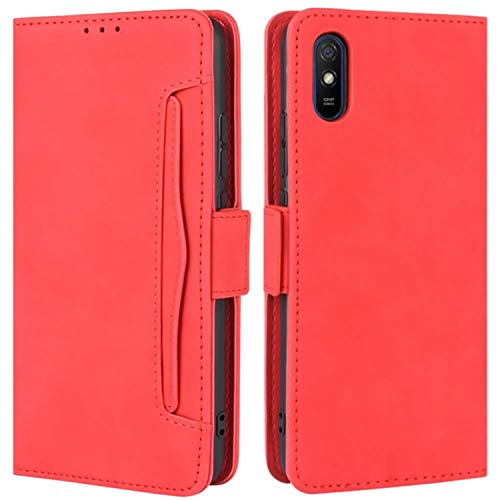 HualuBro Cover per Xiaomi Redmi 9AT, Flip Cover a Libro in Premium PU Pelle Magnetica Antiurto Case Portafoglio Custodia per Xiaomi Redmi 9AT Cover - Rosso