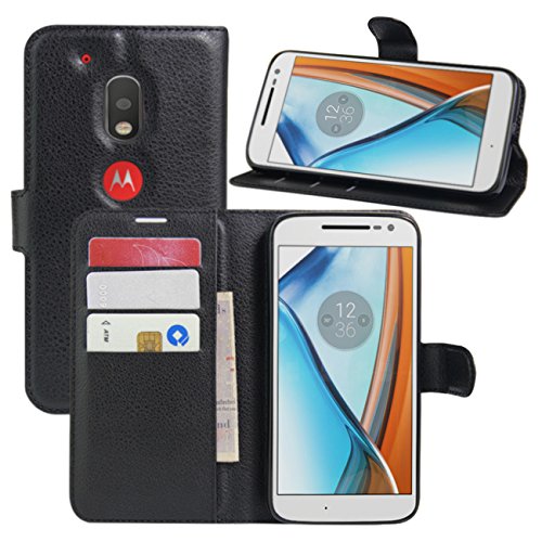 HualuBro Custodia Moto G4 Play, [Intorno Protezione] Custodia in Pelle PU Leather Portafoglio Wallet Protettiva Case Flip Cover per Motorola Moto G4 Play Smartphone (Nero)