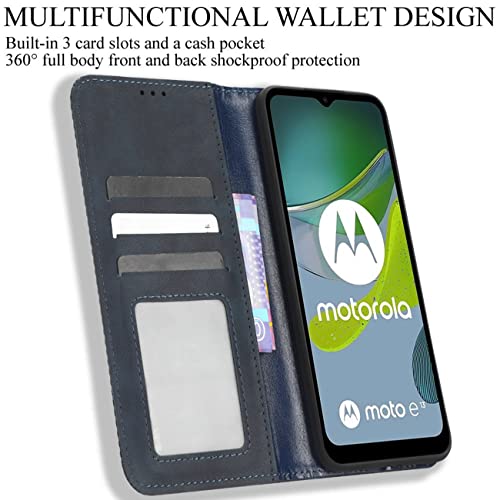 HualuBro Custodia Motorola Moto E13, Flip Cover Portafoglio Magnetica in Retro PU Pelle a Libro TPU Antiurto Stand Case per Motorola Moto E13 Cover (Blu)