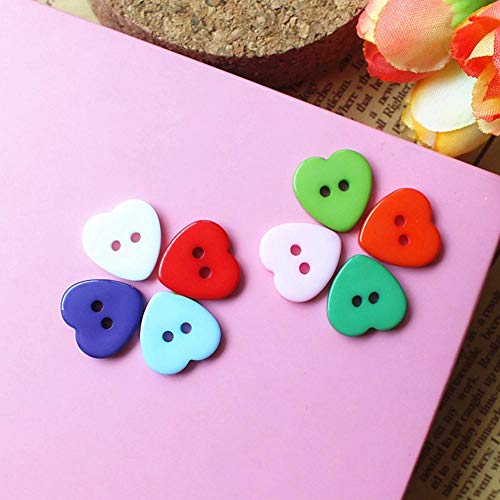 Huang 400pcs Colore Misto 10mm 2- Fori Bottoni a Cuore in Resina Strumento di Cucito Fai da Te per Costumi