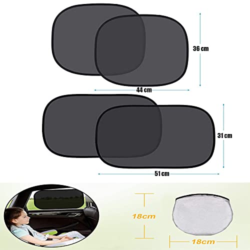 ✨ 【DIMENSIONE UNIVERSALE】4 pezzi tendina parasole auto bambini, Le dimensioni di 44 x 36 cm/51 x 31 cm in si adattano alla maggior parte delle finestre.La tenda parasole auto è pieghevole, quando l'ombrellone non è in uso, puoi girarla, piegarla e metterla nella custodia.