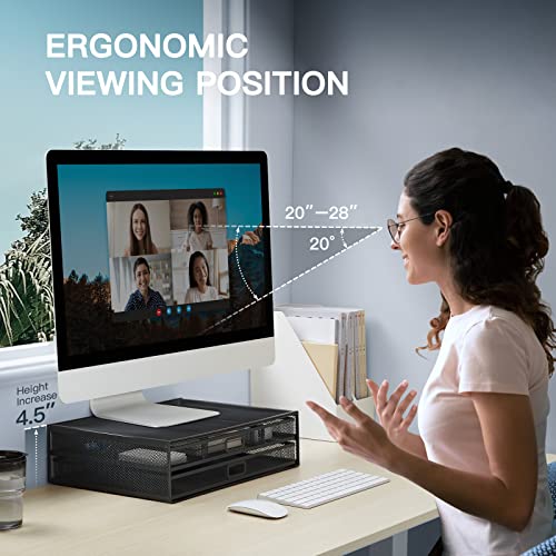 HuaNuo Supporto per Monitor con 2 Cassetti - Organizzatori da Scrivania in Rete Metallica, Supporto Laptop, Notebook, PC, Monitor, Stampante, Scanner Fino a 15 kg
