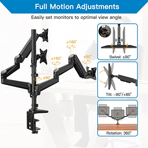 HUANUO Supporto per monitor triplo - 3 supporti per monitor con molla a gas e braccio per monitor per tre schermi LCD piatti e curvi da 17 a 32 pollici con morsetto, kit di gommini nero