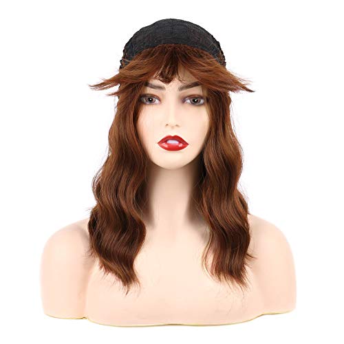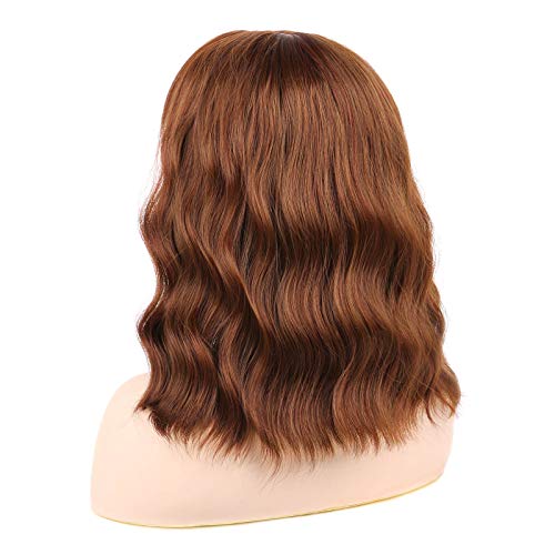 Huarisi 14" Bob Wigs Natural Wavy Curly Synthetic Hair Wig with Bangs Ash Brown Mixed Auburn Color Short Heat Resistant Shoulder Length Wigs Middle Part Synthetic Wig Full Head for Women
