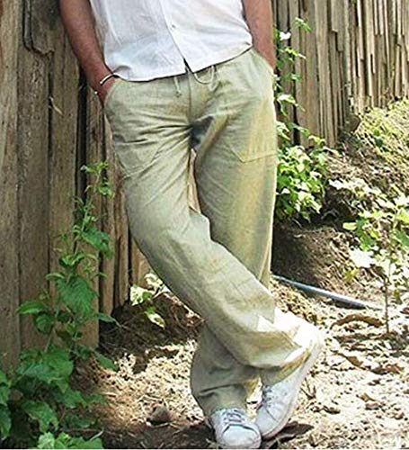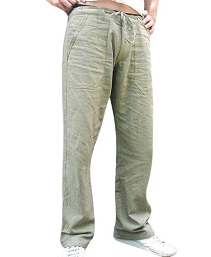 Huateng Pantaloni Casual a Gamba Larga da Uomo in Cotone e Lino con Coulisse di Grandi Dimensioni