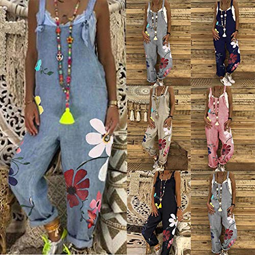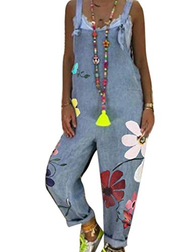 Huateng Salopette da Donna con Stampa di Fiori Salopette Senza Maniche Plus Size Pagliaccetti