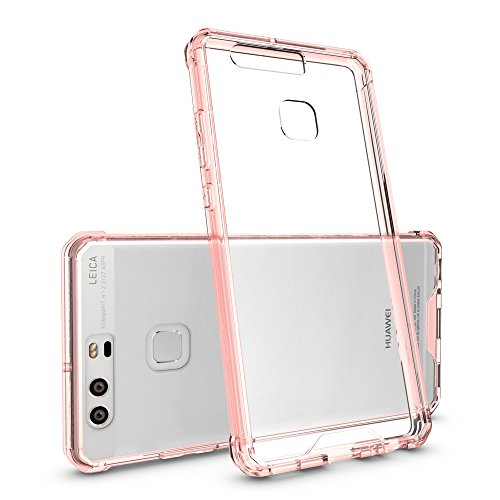 Huawei P9 Case, Heyqie(TM) Transparent Crystal Flexible TPU Slim Body Shield Bumper with Clear Acrylic Backplate Hybrid Protective Phone Cover Case for Huawei P9 - Pink