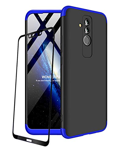 Huawei P20 custodia 360 gradi rosso nero ultra sottile tutto con protezione 3 in 1 PC Telefono Cover + vetro temperato pellicola protettiva schermo JOYTAG, Blu Nero