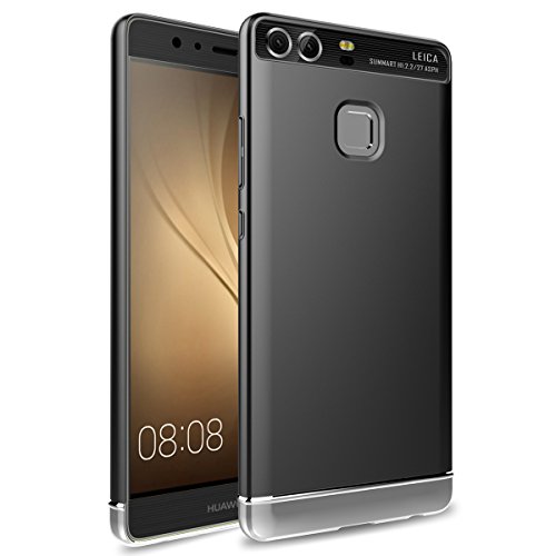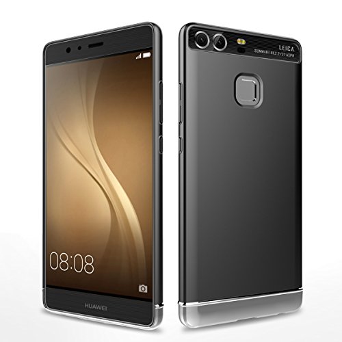 Huawei P9 5.2" Custodia, Moonmini Ultra Sottile Lusso 2 in 1 Design Hybrid PC Hard Bumper Protettivo Cover con Metallo Frame per Huawei P9 5.2 Pollice - Nero