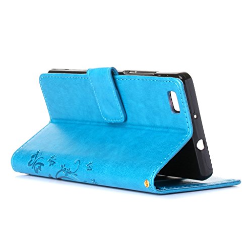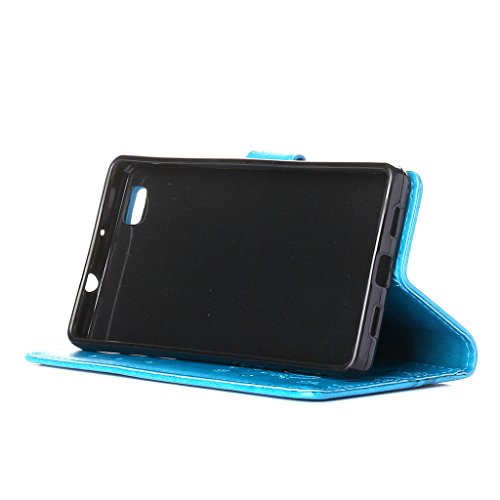 Per HUAWEI P8 Lite Cover, ivencase Retro Magnetico Portafoglio Silicone Slot Schede Flip Custodia PU Supporto Sottil Fit HUAWEI P8 Lite 5.0" Azzurro