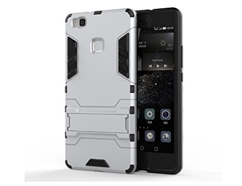 Huawei P9 Lite Custodia,Pania Dual Layer Ibrida Rugged Custodia Morbido Protettiva Bumper Cover Case con Stare per Huawei P9 Lite (Argento)