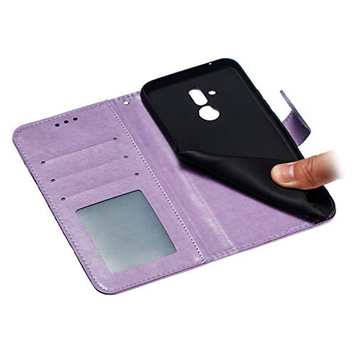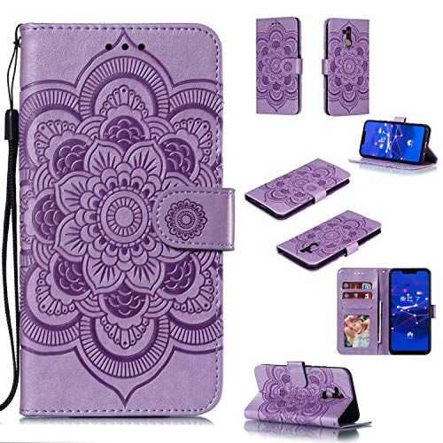 Huawei Mate 20 Lite Custodia Flip, Goffratura Design Case in PU Pelle Internamente Silicone TPU Cover Portafoglio Cover Premium Custodia per Huawei Mate 20 Lite. LD Mandala Purple