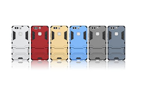 Huawei P9 Plus Custodia,Pania Dual Layer Ibrida Rugged Custodia Morbido Protettiva Bumper Cover Case con Stare per Huawei P9 Plus (Argento)