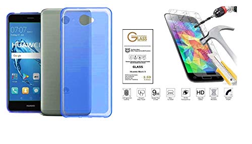 Per huawei y7 trt-lx1 / nova lite+ / trt-l01 (5.5) custodia cover case slim gel silicone gomma tpu morbida bumper cornice telaio blu leggera + pellicola vetro temperato antiurto antigraffio schermo