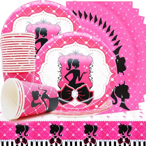 Huaxintoys Principessa Party Stoviglie Party Supplies, Barbi Principessa Decorazioni per Feste di Compleanno Include 20 Piatti Carta, 20 Bicchiere di Carta, 20 Tovaglioli Carta e 1 Tovaglie