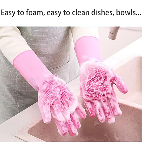 Guanti di lavaggio multifunzionali: guanti da cucina in silicone multifunzione design combinato di guanti in spugna e gomma. Non sono necessari pennelli o spugne per una comoda pulizia. I guanti in silicone ti permettono di sentire a tuo agio. Promemoria importante: il materiale del guanto è tutto gel di silice e non assorbe acqua.