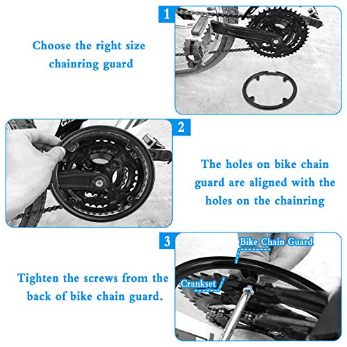 Buona compatibilità: la protezione per ruota della catena ha 4 fori e l'interasse dei fori tra due fori adiacenti è di 10 cm. È adatta per la bicicletta che la manovella è 42T, 44T e una distanza del foro di 10 cm.