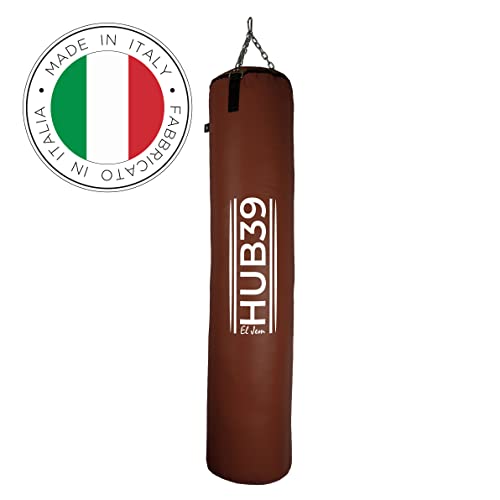 Hub39 Sacco Boxe Pieno, 40kg. - Sacco Boxe Pugilato - Kick Boxing -Muay Thai - MMA- Completo di Catene, Sacco Boxe Lungo 150 cm - Chiedi info sui Modelli in pronta Consegna...