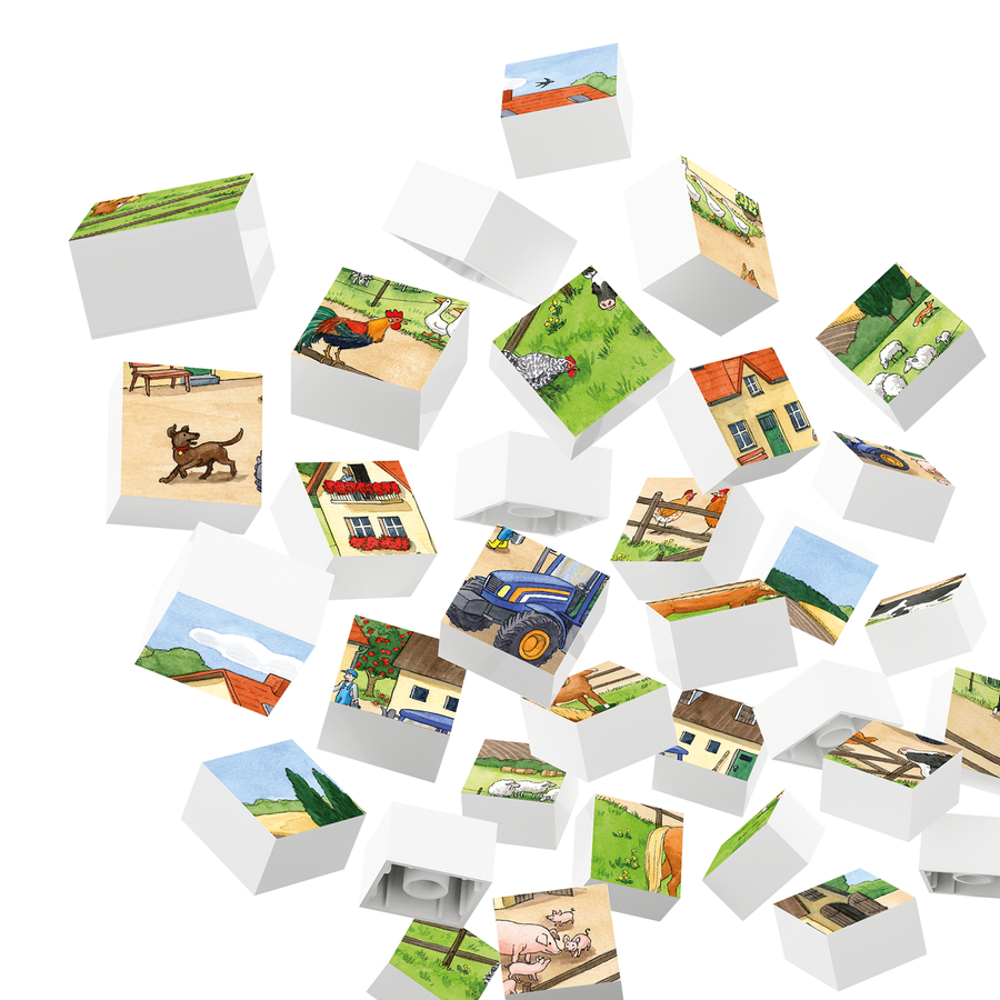 Nella fattoria ci sono molte cose da scoprire. Riuscite a contare le pecore nel prato? Hubelino I puzzle combinano due dei temi preferiti dai bambini: le costruzioni creative con i mattoncini e i motivi colorati dei puzzle. Il familiare principio di incastro dei blocchi da costruzione a morsetto fornisce la presa necessaria e la sensazione al tatto dei blocchi da costruzione stampati di alta qualità è ideale per le mani dei piccoli principianti di puzzle. Tutti i pezzi del puzzle sono compatibili con i blocchi standard di altri produttori. I blocchi di costruzione familiari sono noti ai bambini e facilitano l'inserimento dei pezzi del puzzle, mentre la piastra di base fornisce la stabilità necessaria e funge anche da base ideale per il puzzle quando si viaggia o si riordina. La percezione visiva, la memoria a breve termine e il pensiero logico dei bambini vengono incoraggiati in modo giocoso durante la realizzazione dei puzzle. La sensazione antiscivolo dei pezzi del puzzle e i motivi adatti all'età migliorano anche la coordinazione occhio-mano e le capacità motorie. Dettagli del prodotto: Dimensioni della confezione (lunghezza x larghezza x altezza): 26,5 x 18 x 4,7 cm Puzzle da 35 pezzi Realizzato in plastica ABS di alta qualità Compatibile al 100% con i blocchi di fissaggio standard di altri produttori Istruzioni per la cura: pulire con un panno umido Prodotto in Germania Età: da 4 anni