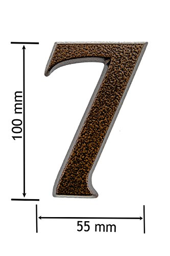 HUBER numero civico 7 in alluminio 10 cm I numeri civici per casa & porta - targhette con numero civico in nobile design rame antico 3D, verniciato a polvere