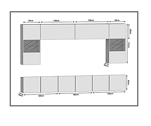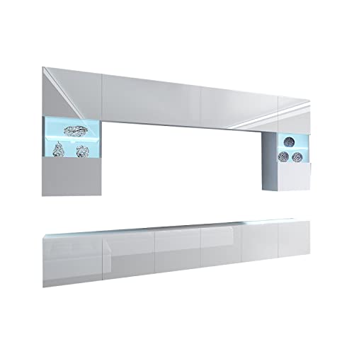 Hucoco PRINS - Mobile TV + LED - Pensile in Stile Moderno - Larghezza 300 cm - Parete TV da Appendere