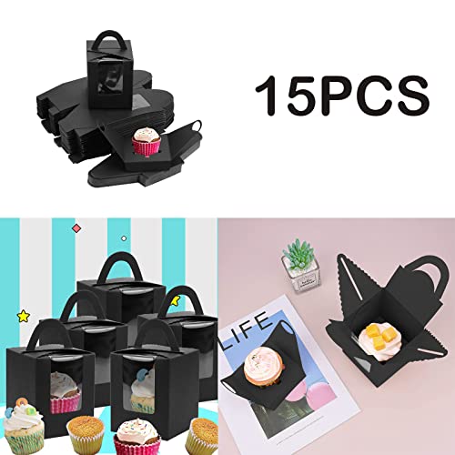 Hudiepan 15 Pezzi Scatola Cupcake con Finestra, Scatole Singole per Cupcake, Scatole per Muffin, Scatole Regalo Cupcake con Finestra, Cupcake Scatola per Matrimoni per Feste di Compleanno (Nero)