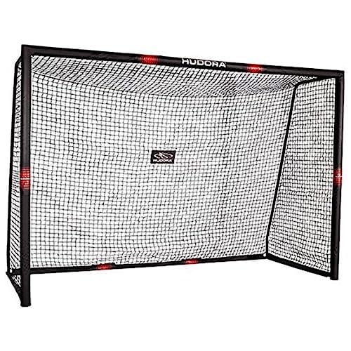 Qualità speciale: porta da calcio di alta qualità di Hudora con imbottitura in schiuma di colore nero/rosso fluo, per bambini e adulti
