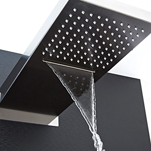 Hudson Reed - Colonna Doccia Idromassaggio Pannello Multifunzione Integrato (Acciaio Inox, Grigio Scuro) - Soffione Pioggia e Cascata, Doccetta e 6 Getti - Design ad Incasso