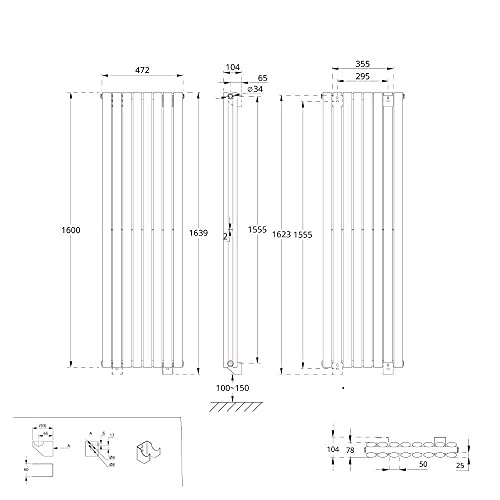 La confezione contiene tutti gli accessori di montaggio (tacchi, tasselli, valvola di spurgo e staffe di fissaggio). Le valvole del termoarredo non sono incluse.
