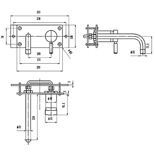 Hudson Reed TRUPK319 - Set Rubinetto Miscelatore Incasso per Lavabo Bagno in Ottone Cromato - Stile Monocomando - Lunghezza Bocca 210mm - Rubinetti Murale Termostatici - Modello Tec