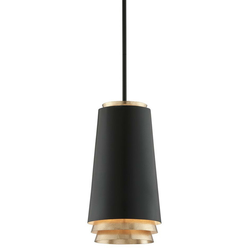 Fahrenheit Sospensione 1 Luce Testurizzata Nera Con Foglia Oro | Finitura: Nero Testurizzato Foglia Oro | Materiale: ferro lavorato a mano | Grado di protezione IP: IP20 | Altezza: 38,1 cm | Altezza minima: 55,9 cm | Altezza massima: 162,6 cm | Diametro: 21 cm | Tipo di lampada: E27 | N. di lampade: 1 | Lampadina inclusa: no | Dimmerabile: Sì - Sono necessarie lampadine dimmerabili | Lumen: 840lm | Peso: 4,19 kg | Potenza (max): 40 W