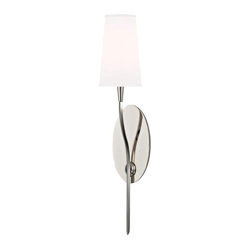 Hudson Valley Rutland Applique da parete a 1 luce in nichel lucido con paralume bianco | Finitura: nichel lucido | Materiale: ottone | Grado di protezione IP: IP20 | Altezza: 64,77 cm | Larghezza: 12,7 cm | Proiezione: 17,78 cm | Tipo di lampada: E14 | N. di lampade: 1 | Lampadina inclusa: non inclusa | Peso: 1,36 | Potenza (massima): 60 W