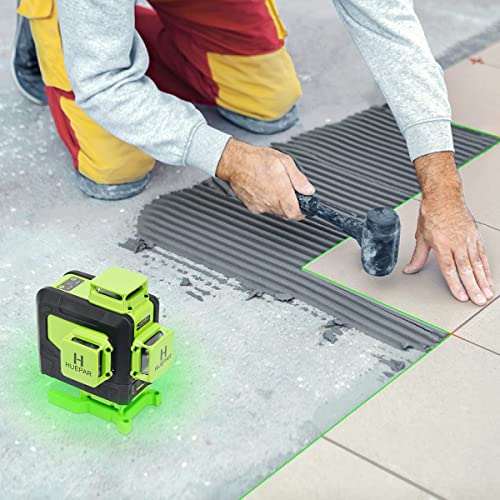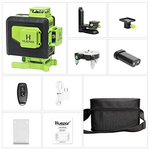 Huepar 4x360 Remote Control Laser Level Self-Leveling 16 Lines Green Beam 4D Cross Line Tiling Floor Laser Tool-Horizontal&Vertical Laser Lines, Magnetic Bracket, Li-ion Battery&Adjust Base 904DG