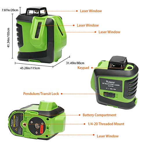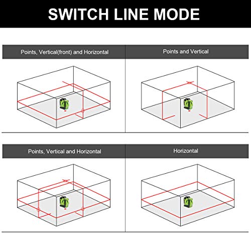 【Modalità a impulsi esterna】: La modalità a impulsi consente ai laser a linee incrociate di avere una buona visibilità all'esterno fino a 50metri a piena luminosità per la massima visibilità (consigliamo il rilevatore laser Huepar LR-6RG o LR-5RG). Misura precisa con una precisione di livellamento di ±3mm/10m per linee laser.