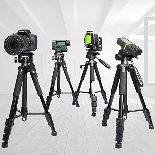 Huepar TPD14 143cm / 56" Treppiede per Livella Laser, Treppiede da viaggio Regolabile con Testina Flessibile a 3-vie, Piastra a Sgancio Rapido con Vite 1/4"-20 e Dado Adattatore 5/8"-11